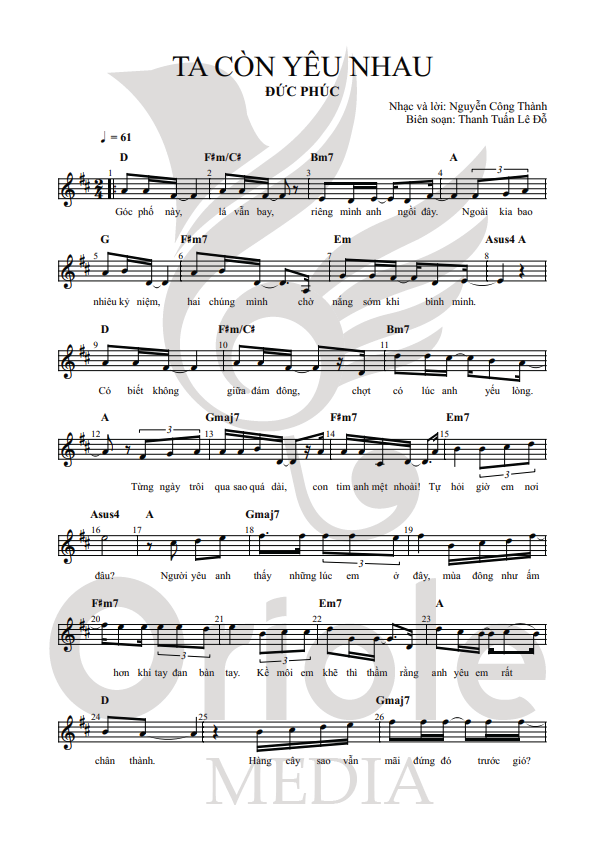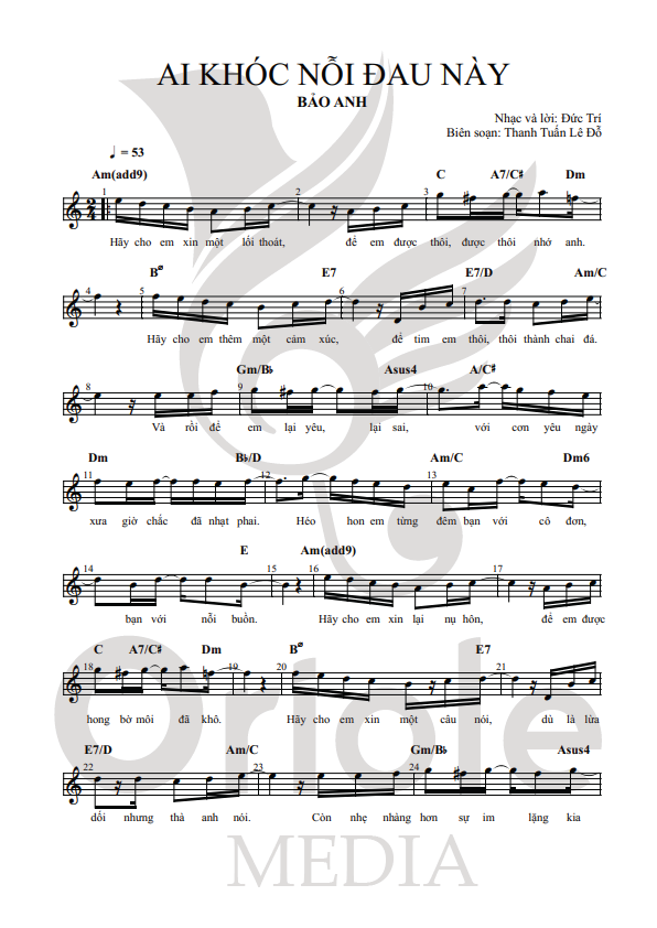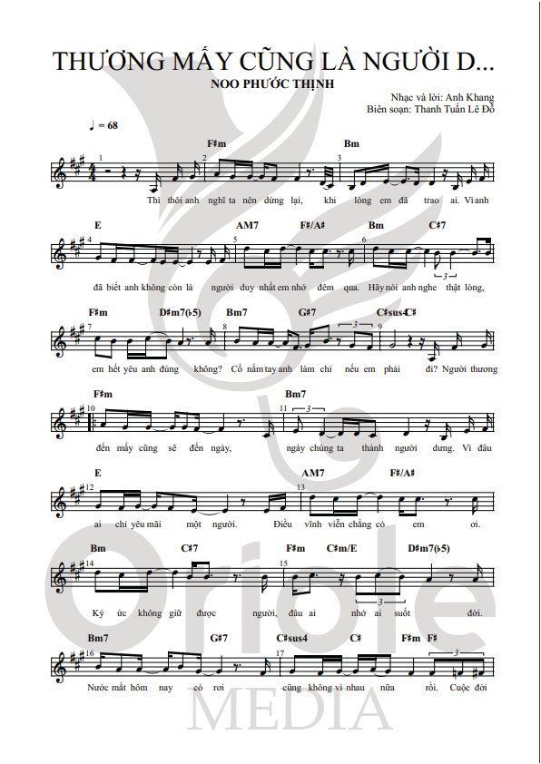 Các sheet nhạc được biên soạn bởi Oriole Media