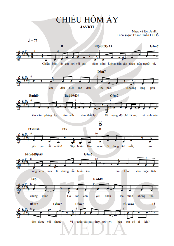 Các sheet nhạc được biên soạn bởi Oriole Media