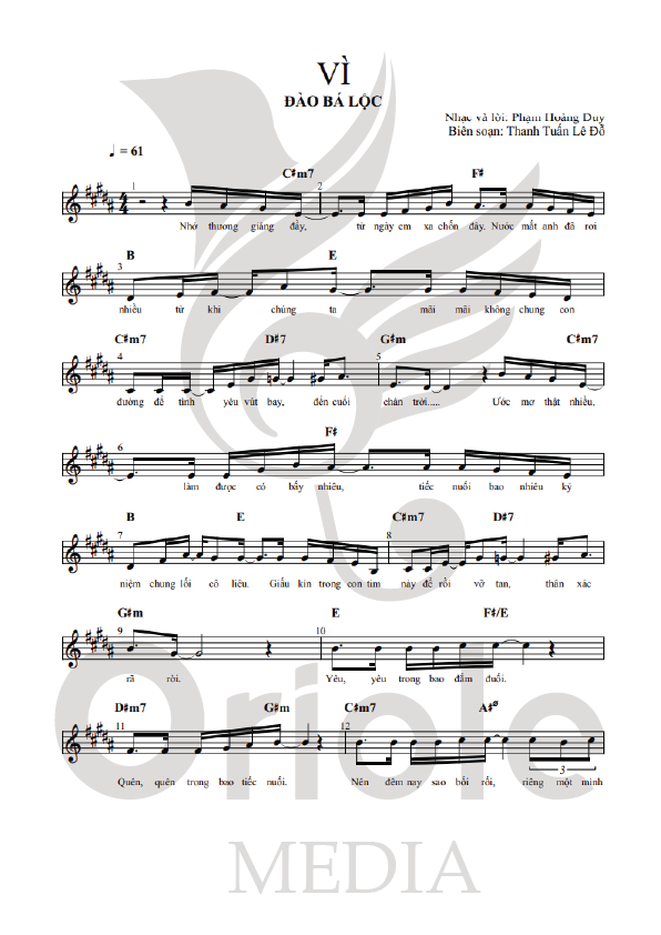 Các sheet nhạc được biên soạn bởi Oriole Media