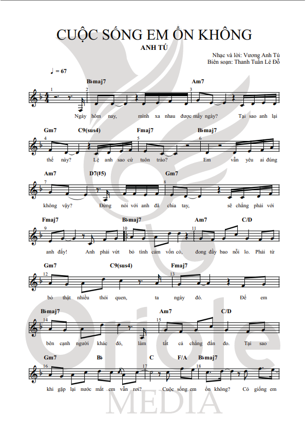 Các sheet nhạc được biên soạn bởi Oriole Media